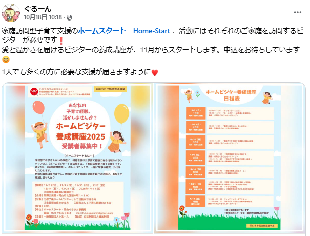 ホームスタート・岡山ぐるりん、今年度ビジター養成講座!